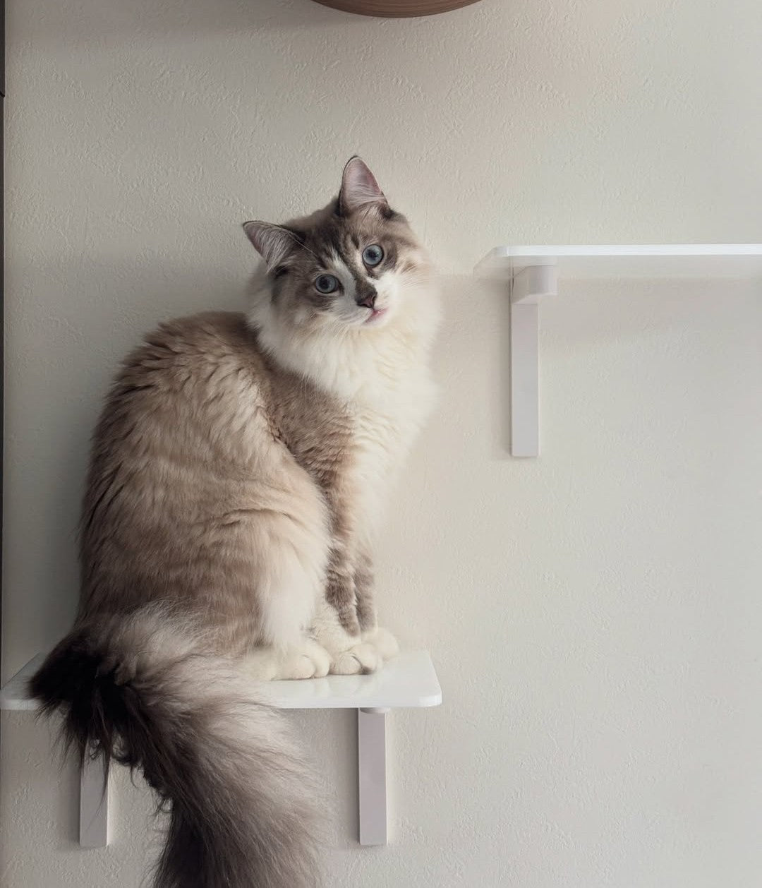 ネコちゃんの遊び場を広げるキャットステップ。石膏ボードの壁に取り付け可能。金具の取り付けに特別な工具は不要、付属のスティックを使ってピンを挿し込むだけで簡単に取り付けができます。ステップ部分はマグネットで固定するので、簡単に取り外しでき、模様替えや掃除もラクラク!猫ちゃんの肉球でも滑りにくい素材でできています。