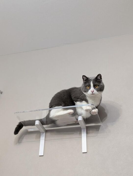 ネコちゃんの遊び場を広げるワイドステップ。石膏ボードの壁に取り付け可能。金具の取り付けに特別な工具は不要、付属のスティックを使ってピンを挿し込むだけで簡単に取り付けができます。ステップ部分はマグネットで固定するので、簡単に取り外しでき、模様替えや掃除もラクラク!猫ちゃんの肉球でも滑りにくい素材でできています。