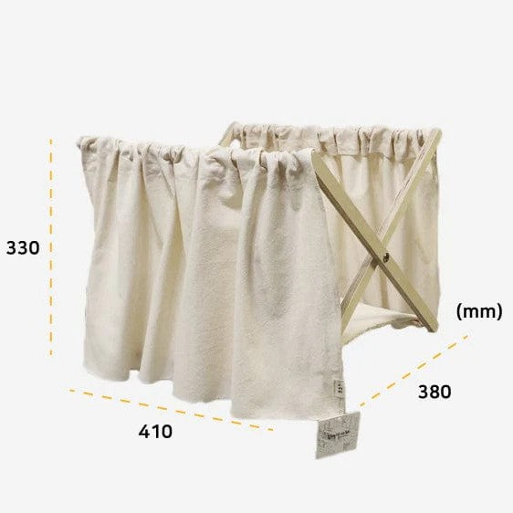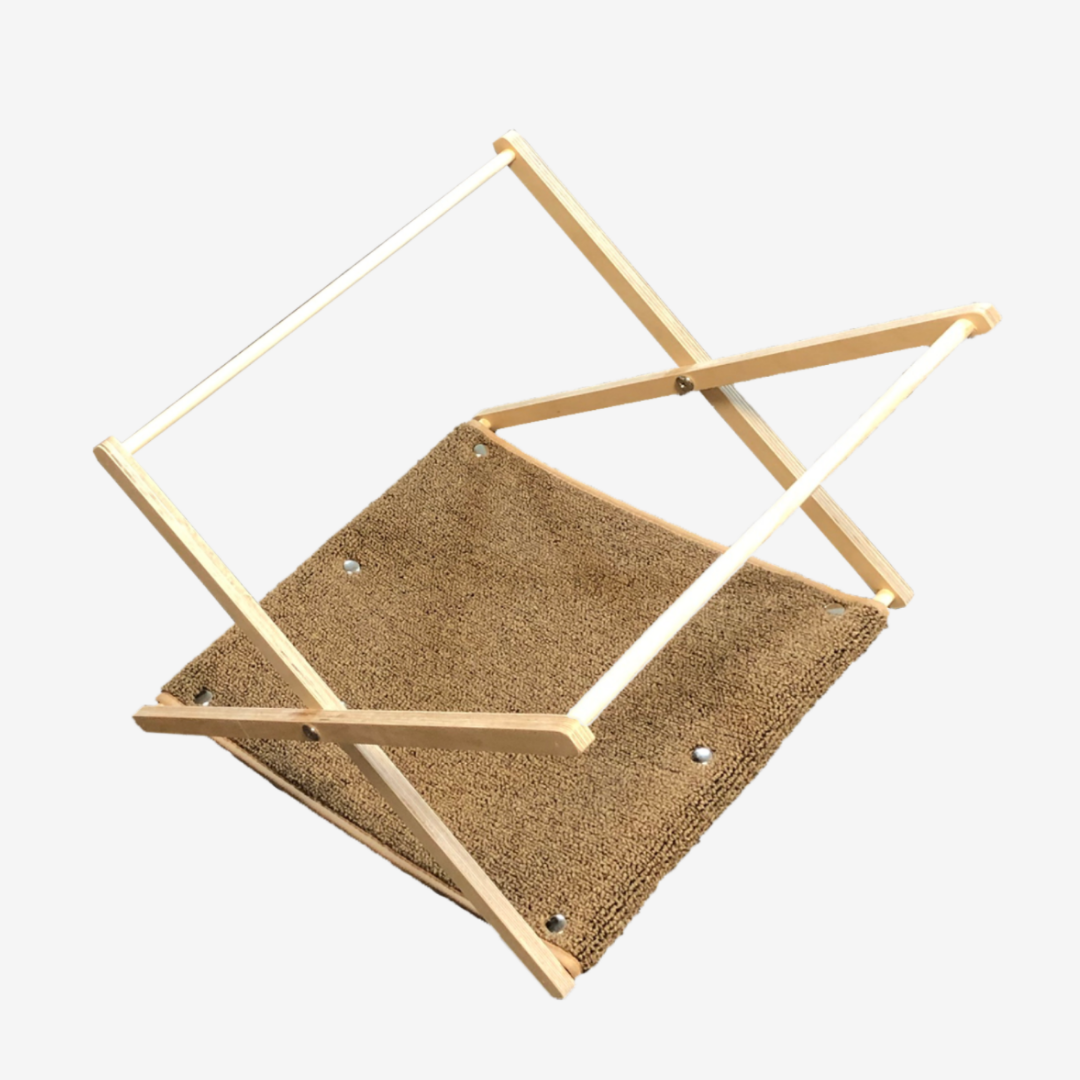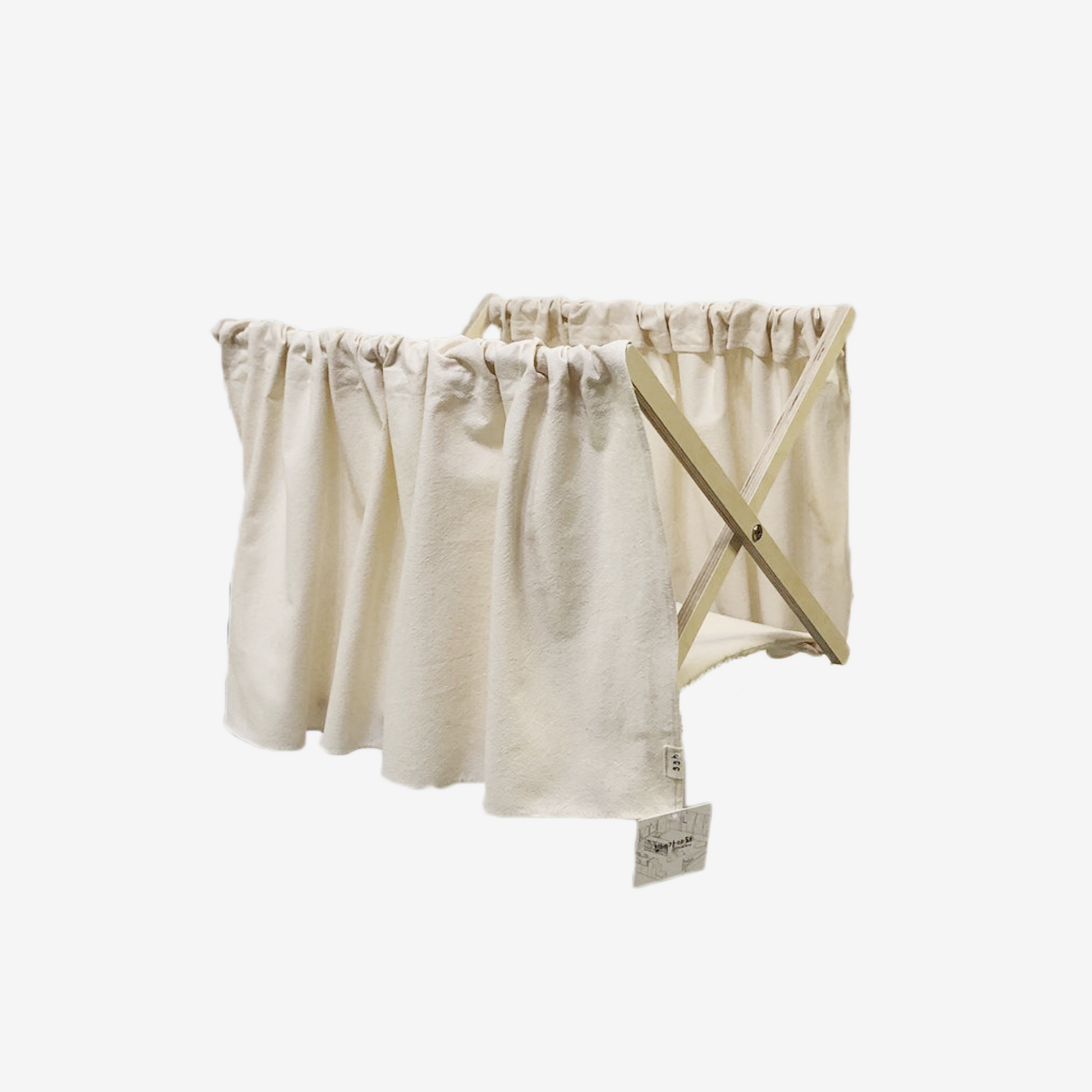 カーテンがついた猫用ハウスは、飼い主のインリアとも馴染むように職人と一緒に試行錯誤を重ねました。ナチュラルな色合いで、どんなお部屋にも馴染むデザインです。